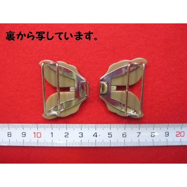 引っかけバックル No.33 ベージュ系×銀 30ミリ (ベルトの幅) オリジナルバッグの飾り(アクセント)にも! 縦 ・横 ・厚み 約40ミリ×60ミリ×12ミリ 重さ : 約15グラム 昔は、ワンピースのウエストのベルトの止め具として全国で売られていました! 今では、「バックル」 という言葉も、あまり使われていません。 この商品は、お届けが郵便受けでも大丈夫な場合、ゆうパケットや、こねこ便 420 で発送する事が出来ます。 備考欄に ゆうパケット希望、又は、こねこ便 420 希望とご記入ください。