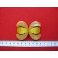 引っかけバックル No.35 黄色系×銀 30ミリ (ベルトの幅) オリジナルバッグの飾り(アクセント)にも! 縦 ・横 ・厚み 約45ミリ×60ミリ×12ミリ 重さ : 約14.5グラム 昔は、ワンピースのウエストのベルトの止め具として全国で売られていました! 今では、「バックル」 という言葉も、あまり使われていません。 この商品は、お届けが郵便受けでも大丈夫な場合、ゆうパケットや、こねこ便 420 で発送する事が出来ます。 備考欄に ゆうパケット希望、又は、こねこ便 420 希望とご記入ください。