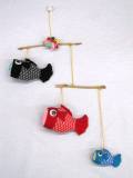 ちりめん生地で作る「こいのぼり」のモビールです。 お部屋の中で、ゆら、ゆら、揺れて、気持ちよさそうです。 お部屋に、癒しの空間ができます。