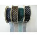 | 製品名 | ピンドットオーガンジー リボン ★ 24ミリ 幅 ★ カラー:紺, 茶, みどり, 黒 ★装飾、服飾、小物手芸に ★ 1m 単位の切り売りです [rbn-0038] |